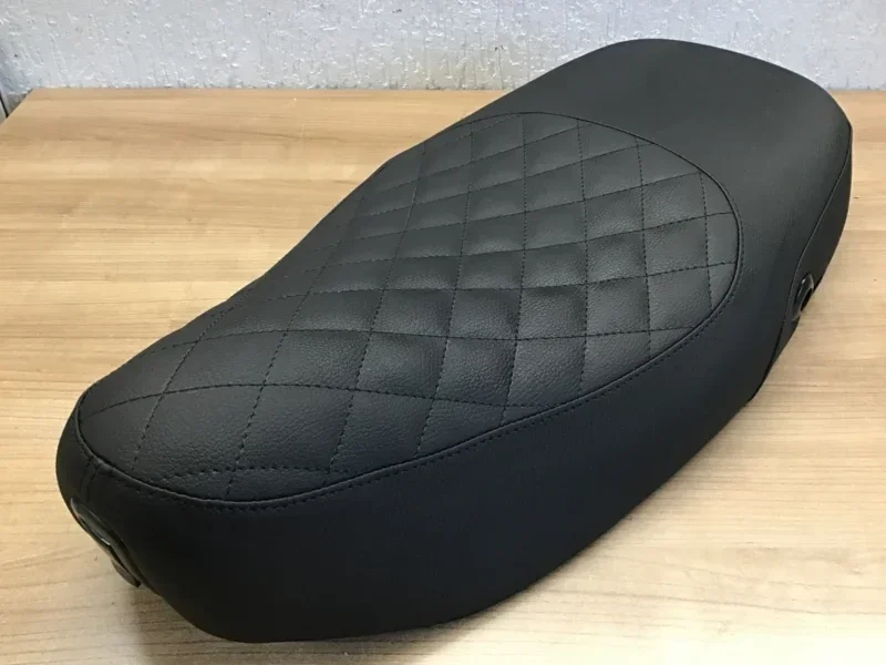 Dit zadel is voorzien van een simpel motief in 1 kleur, zitvlak voorzien van zwart skai met ruitmotief.